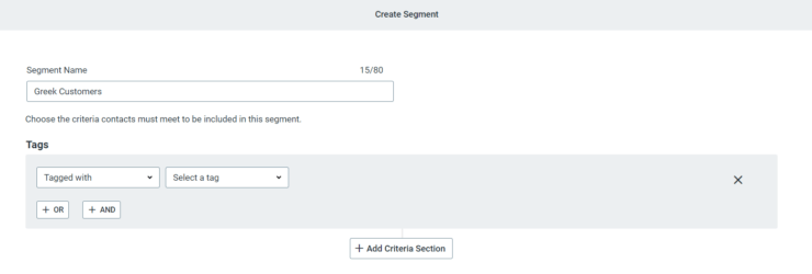 Audience segmentation is a strong aspect of Constant Contact. Users can create segments from list membership, contact activity, contact details, tags, or eCommerce activity. You simply filter your contacts based on one or more criteria and that’s it!