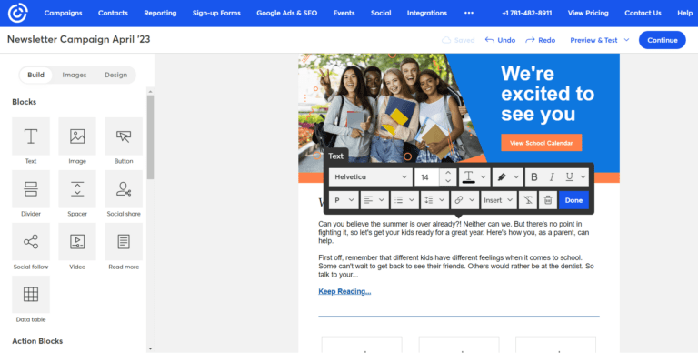 Constant Contact, one of the pioneering email marketing platforms, has evolved significantly since its inception. It boasts a wide array of features spanning email marketing, automation, SMS marketing, and CRM. Furthermore, it can cater to your social media posting requirements and provide assistance with your advertising efforts.